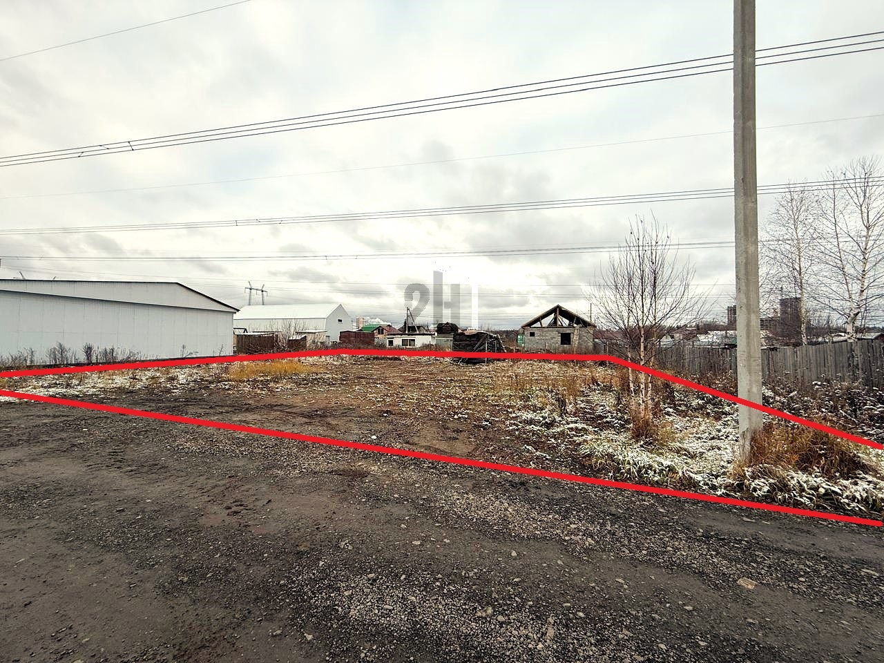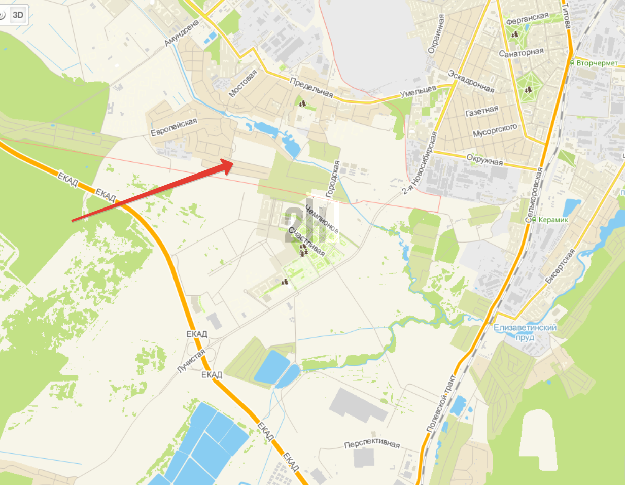 Ровный отсыпанный участок прямоугольной формы.