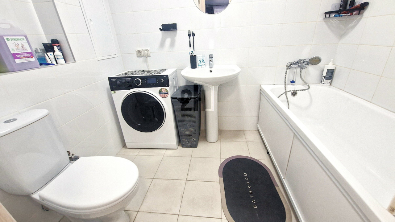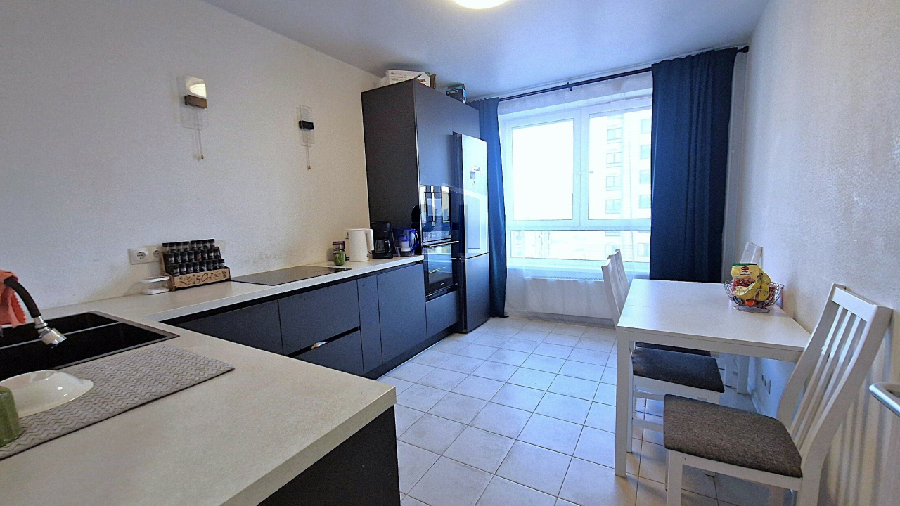 В квартире состояние хорошее. Ремонт от застройщика. Два сан.узла в плитке. Кухонный гарнитур остается в подарок покупателям.
